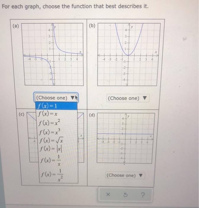 For Each Graph Choose The Function That Best Describes It Brainly Com